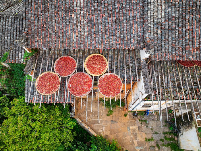 立秋过后,多地庄稼陆续成熟,田间地头一派繁忙景象。农民忙着收割水稻、玉米、谷子……村民们利用晴好天气,将刚收获的辣椒、玉米等农作物,晾晒在自家门前屋后,呈现出一幅美丽的乡村“晒秋图”。
