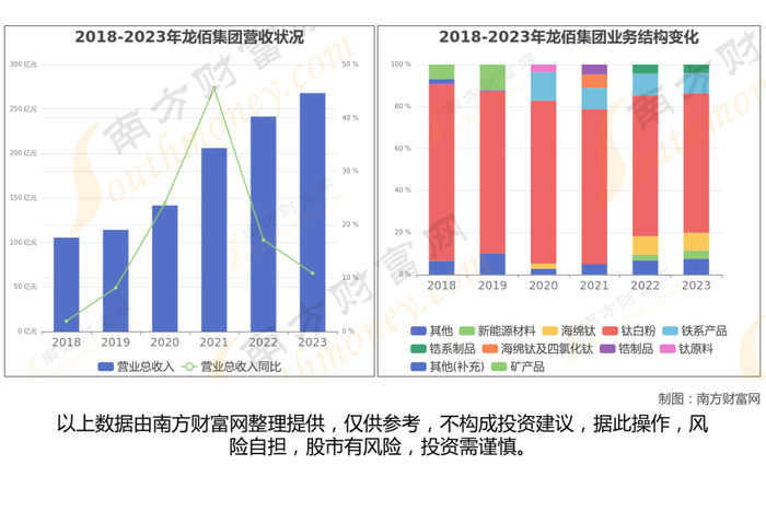龙佰集团于2011年7月15日在深圳证券交易所上市,股票代码002601。公司主营业务为从事钛白粉、海绵钛、锆制品和硫酸等产品的生产与销售。