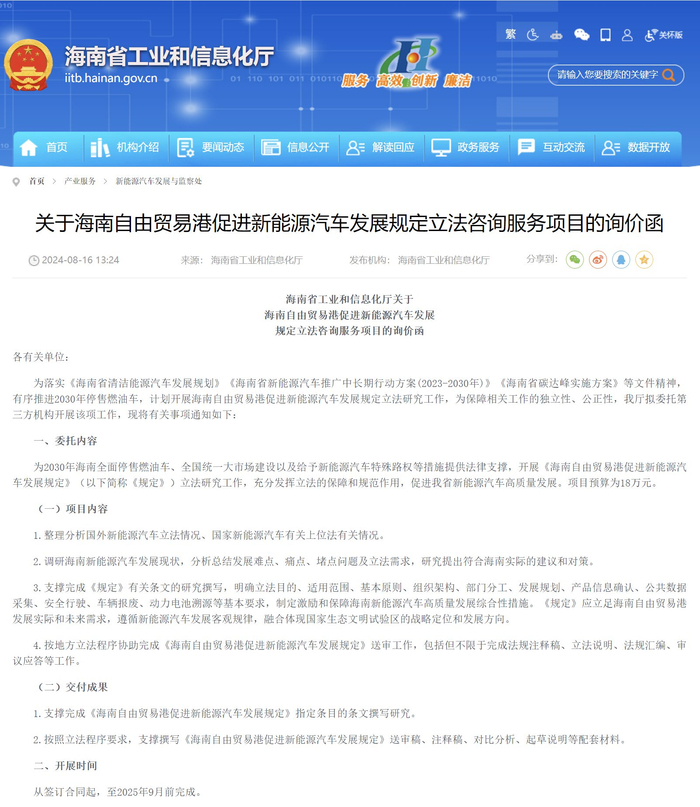 项目内容包括调研海南新能源汽车发展现状,分析总结发展难点、痛点、堵点问题及立法需求。