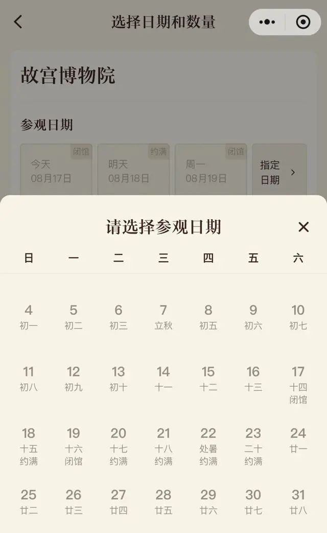 至于少数无保障的纯预约门票,往往并不能顺利预订。记者在旅游平台KlooK客路上看到一款标价147元的“故宫门票+景山门票+讲解”套票显示,8月25日至31日都可以预订。但当点击预订的时候,会发现实际价格变成了274元。