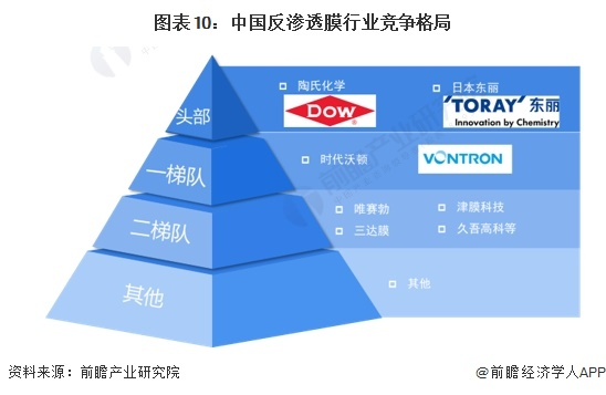 从市场份额看,国外反渗透膜企业仍占据主导地位。国外企业中,陶氏化学、日东电工、东丽、GE、世韩、LG等企业占据了大量的市场份额,形成寡头竞争的局面。