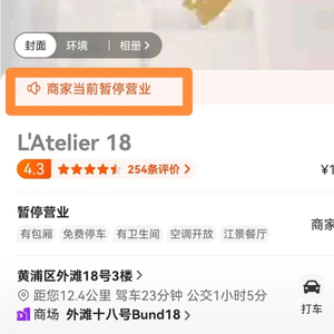 据证券时报,外界不清楚L‘Atelier 18突然闭店的确切原因。社交媒体上有博主引述餐厅工作人员称,“餐厅的老板临时通知关门,目前还没有支付离职补偿,还有拖欠工资和公积金的问题。”