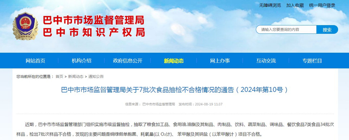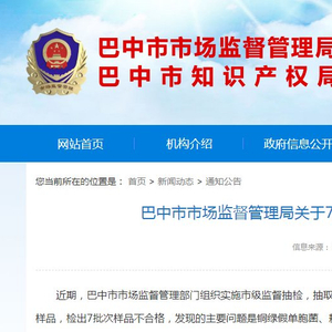 四川省巴中市市场监督管理局关于7批次食品抽检不合格情况的通告(2024年第10号)