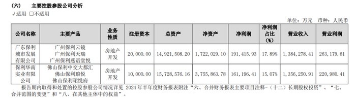 财报显示,保利发展控股参股公司广东保利城市发展有限公司、保利华南实业有限公司旗下主要持有广州保利云镜、保利天瑞、保利燕语堂悦、佛山保利中交大都汇、保利琅悦、保利珺悦府6个楼盘项目,合计带来营收274亿元,净利润35.3亿元,贡献比例达到了19.68%、32.96%。