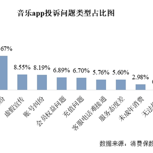 中国电子商会旗下的消费服务保障平台消费保相关数据显示,截止到2024年8月19日,累计收到音乐APP相关投诉为4,100件,整体投诉解决率为32.54%。其中,2024年累计投诉量为1,303件,占投诉总量的31.78%