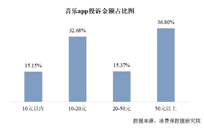消费保数据显示,在消费者投诉案件中,涉及金额主要集中在几个区间:15.15%的案件金额在0至10元之间,10至20元的案件占比达到32.68%,20至50元区间的案件占15.37%,而50元以上的案件占比最大,为36.80%。