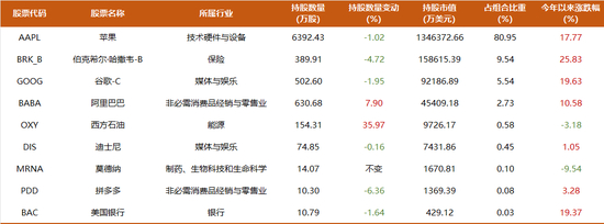 除新买进西方石油外,仅对自己持有的谷歌-A减持了50万股,占到原本持股比例的16.45%;