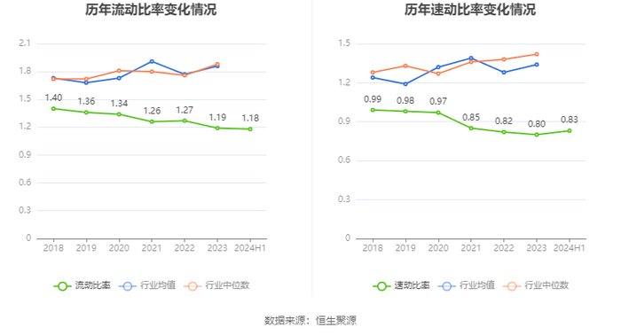 2024年上半年,公司流动比率为1.18,速动比率为0.83。