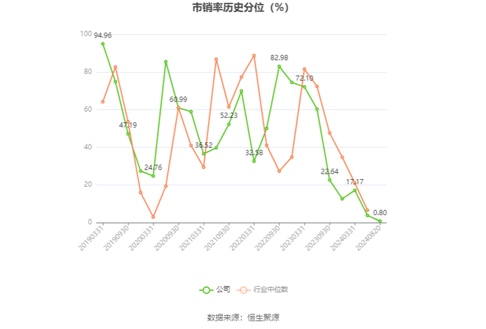 从存货变动来看,截至2024年上半年末,公司存货账面价值为56.43亿元,占净资产的79.35%,较上年末减少4.76亿元。其中,存货跌价准备为8703.87万元,计提比例为1.52%。