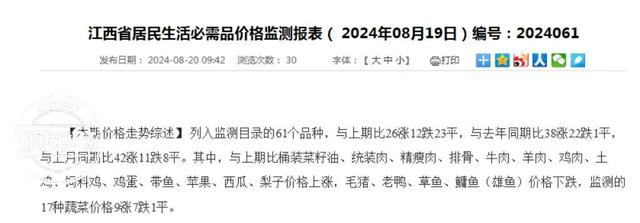 2024年8月19日发布的《江西省居民生活必需品价格监测报表》显示,与上期比,监测的17种蔬菜的价格,9涨7跌1平。商户告诉记者,有些蔬菜涨了不少价,但他们并不是很开心。