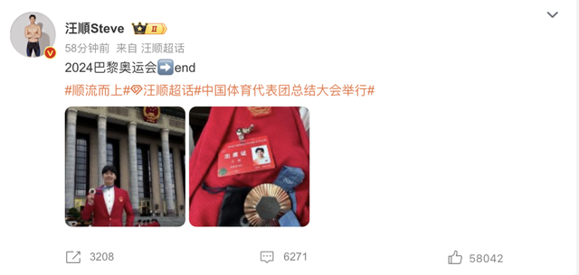 汪顺:“2024巴黎奥运会➡️end”