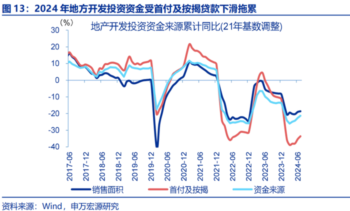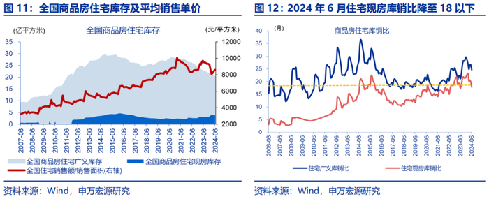 若地方“收储”政策力度加大、征收范围拓宽,或可缓解房企现金流压力,有利于“保交楼”推进。2024年6月,商品房住宅现房库存约为3.8亿平方米,期房库存约为16.3亿平方米,住宅现房库销比为17.9月,但住宅广义库销比仍达24.7月。若“收储”政策力度加大、征收范围拓宽至期房,要将商品房住宅广义库销比降至18个月,参考配售型保障房单位价格收购(以西安为参考,配售价格约为区域商品住房价格的50%左右),所需“收储”资金或在2.3万亿元左右。政策指引下,大规模“收储”或可一定程度缓解首付及按揭贷款下滑对地产开发投资资金的拖累,有利于复工竣工推进。