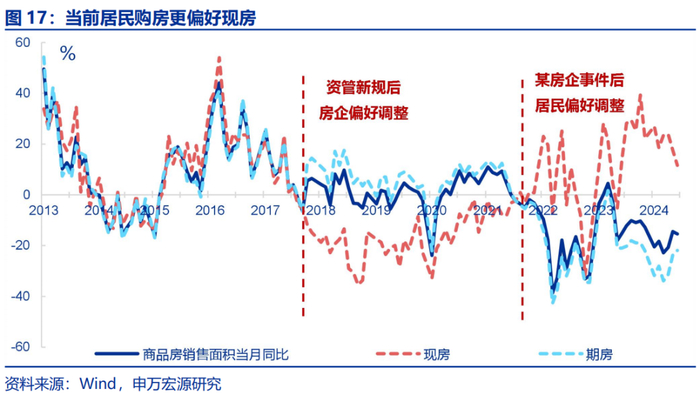若转化为配售型保障房为后续主要地方“收储”模式,居民部分商品住宅购房需求或受影响、尤其是期房。2018年之前,地产投资由新房销售、新开工驱动,资管新规后,房企通过期房销售回款、同时放缓后续施工进度的方式融资,拉长施工周期,使得目前地产投资更多由存量房复工驱动。对于期房交付风险的担忧也是居民购房意愿修复较慢的原因之一。在此情境下,若重点征收现房的配售型保障房后续加速落地,部分居民的商品住宅购买需求或被配售型保障房替代,居民对期房需求或进一步下降。