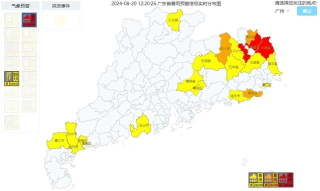 20日7时许,广东梅州大埔分镇、梅县分镇发布暴雨红色预警。