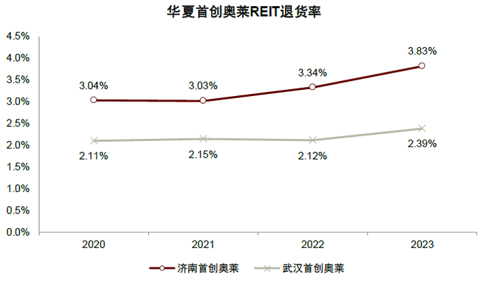 注:退货率为销售退款金额占总销售额比重。 资料来源:华夏首创奥莱REIT招募说明书,中金公司研究部