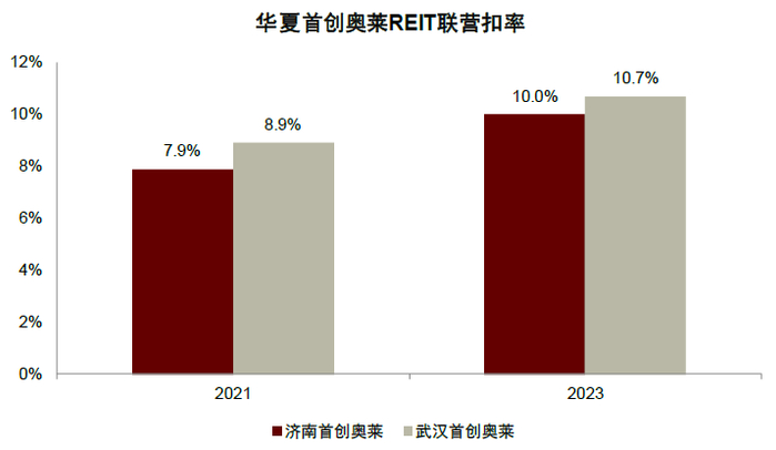 商业模式:联营为国内奥特莱斯的主要模式。不同于购物中心面向商户收租的模式,国内奥特莱斯借鉴百货、采用以联营为主的商业模式。以华夏首创奥莱REIT为例:2023年其租金收入中联营收入占比达81%,平均联营扣率(联营收入/品牌零售额)在10-11%左右。