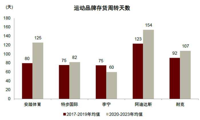 图表39:部分运动品牌存货周转天数在疫情后有所提升