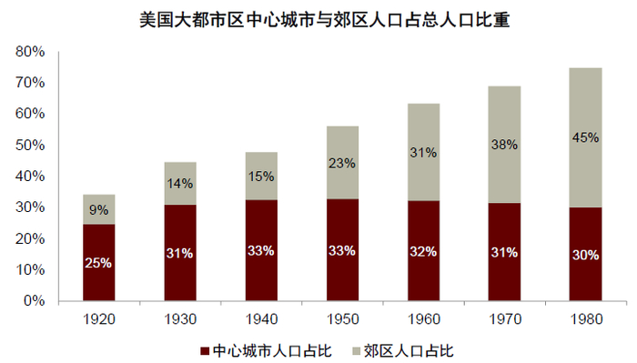 图表7:美国人口郊区化趋势于20世纪50年代兴起