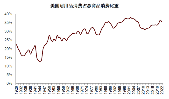 个人消费能力的整体提升与中产阶级的迅速发展推动了“品牌化”消费的兴起。一方面,美国已于20世纪20至60年代基本完成了“消费大众化”的进程,大萧条后的1933-1960年间美国个人消费支出年化复合增速达8%,同期汽车、家电家居、娱乐产品等耐用消费品支出占比从16%提升至1960年的26%左右,个人消费增长重心由“人无我有”向“人有我优”发展具备基础。另一方面,美国中产阶级亦在迅速崛起,20世纪60-80年代美国中等及中高收入家庭收入占比[1]保持在41-42%左右的历史高峰。
