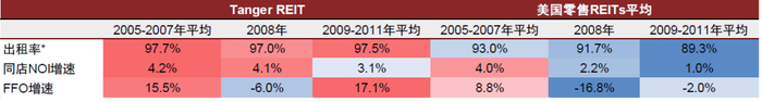 图表21:2008年前后Tanger与美国零售REITs经营表现对比
