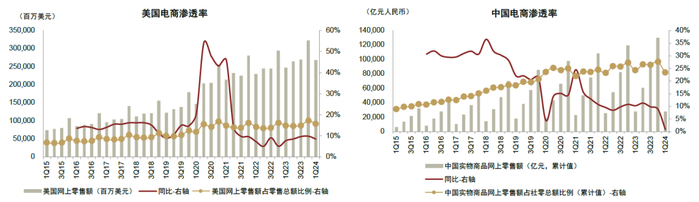 长期维度奥莱市场容量或存在天花板。参考美国长周期经验,其奥特莱斯项目总数在1990年代末达峰后便步入下行期,后续以头部奥莱运营商整合市场、优质单体奥莱扩容为主。我们认为国内奥莱市场长期内或亦存在增长天花板,考虑到:1)奥特莱斯市场容量本质上依托于品牌去库存诉求,城市内品牌正价店与奥莱店之间存在数量比例关系;此外,当前部分高端品牌正在考虑控制奥莱店销售额占比或关闭部分奥莱门店,这或亦将对奥莱市场容量带来边际影响。2)奥特莱斯与线上电商在品牌渠道管理、以及消费者需求中确存一定相互替代关系,考虑到2015年后中国电商渠道经迅速发展、当前渗透率已超美国,且国内电商在物流成本、配送速度等方面具备优势,我们认为这亦将对奥莱市场天花板产生影响。