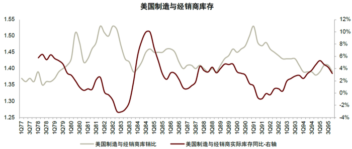 图表3:1977-1995年美国实际库存同比变化与库销比