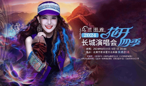 【长城之巅,花开四季】2024年8月31、9月1日,乌兰图雅“花开四季长城演唱会”携其独特的民族风情与流行音乐元素,在古北水镇旁的长城脚下,将为观众呈现一场难忘的音乐盛宴。此次演唱会不仅回顾了乌兰图雅多年来的音乐旅程,更以长城为背景,讲述了一段段关于梦想、坚持与传承的故事。