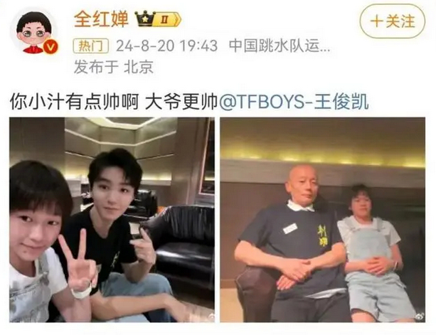 全红婵配文称:“你小汁(王俊凯)有点帅啊,大爷更帅。”