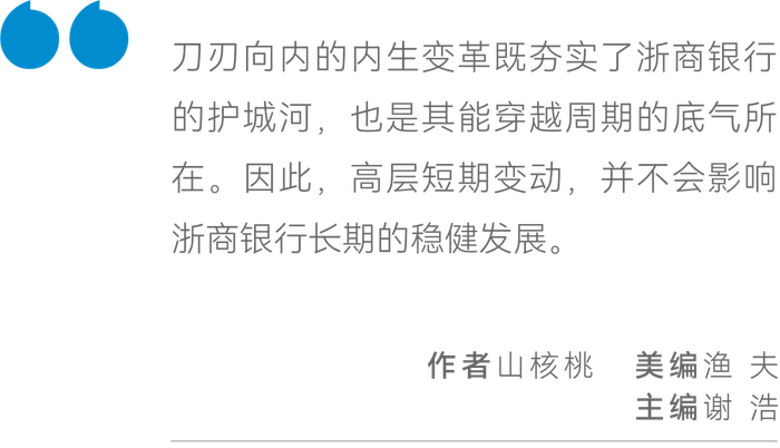 这些刀刃向内的内生变革既夯实了浙商银行的护城河,也是其能穿越周期的底气所在。因此,高层短期变动,并不会影响浙商银行长期的稳健发展。