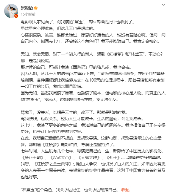 被指"长得丑","新黛玉"回应了