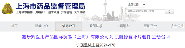 施乐辉医用产品国际贸易(上海)有限公司对肌腱修复补片套件主动召回