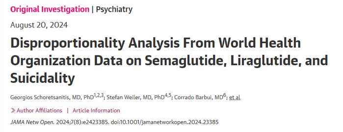 这一数据库汇集了140个国家与药物相关的不良事件,记录了糖尿病患者和减肥患者在服用了司美格鲁肽等药物后报告的自杀念头。