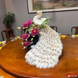 朱贺军作品《孔雀迎宾》。中工网记者 于小舒 摄