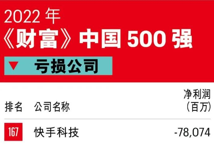 2022年中的时候,《财富》中国500强曾做过一个亏损企业排行榜。榜单上,亏最多的正是快手——亏损额超过780亿元。