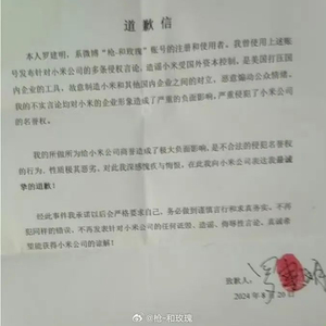 8月20日,在微博拥有29万粉丝的“枪-和玫瑰”账户发布了对小米的道歉信,称自己造谣“小米受国外资本控制,是美国打压国内企业的工具”等不实言论,均对小米的企业形象造成了严重的负面影响。
