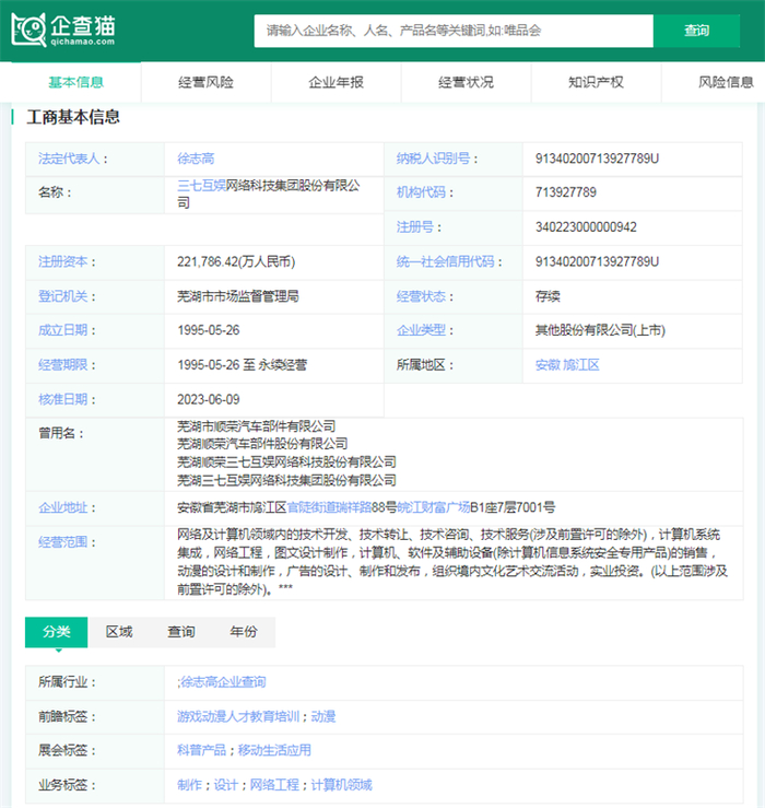 三七互娱网络科技集团股份有限公司(简称为:三七互娱)成立于1995年,注册资金为221,786.42万人民币,法人代表是徐志高。三七互娱是全球TOP20上市游戏企业,中国互联网20强企业。旗下拥有研发品牌三七游戏,专业游戏运营品牌37网游、37手游、37GAMES,以及优质素质教育品牌妙小程。