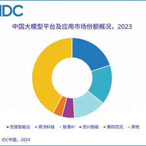 平台及相关应用市场方面,IDC称,在过去的一年中,行业对于大模型更多的是早期投入,甚至观望而不重投入,因此2023年整体市场规模并不显著,也主要由早期投入者如百度、商汤、智谱、百川等公司构成。进入2024年,头部互联网公司加大对大模型的投入且发起价格战,为早期的大模型初创企业带来一定的竞争压力。预计未来2—3年,市场格局仍将发生多轮巨变。