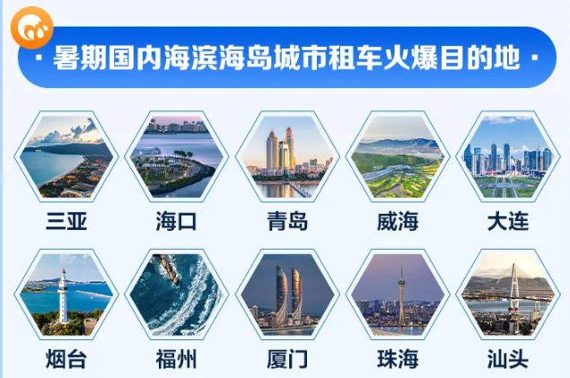 近日,携程发布《2024年暑期租车自驾报告》。报告显示,2024年暑期国内租车自驾订单量同比去年增长超40%;暑期单日订单量刷新平台历史高峰,同比增长50%。报告同时发布“暑假自驾游热门目的地”“境外暑假自驾热门目的地国家”“暑期国内海滨海岛城市租车火爆目的地”等多个榜单。其中,三亚、海口、青岛、威海、大连、烟台、福州、厦门、珠海和汕头成为国内热门自驾海滨城市。