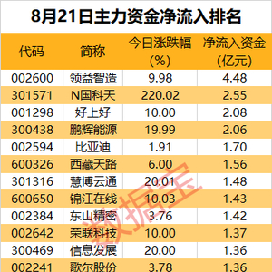 从个股来看,18只个股主力资金净流入超过1亿元。其中,领益智造、N国科天、好上好净流入金额排前三,依次为4.48亿元、2.55亿元、2.08亿元。