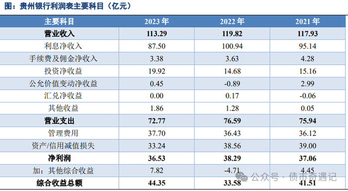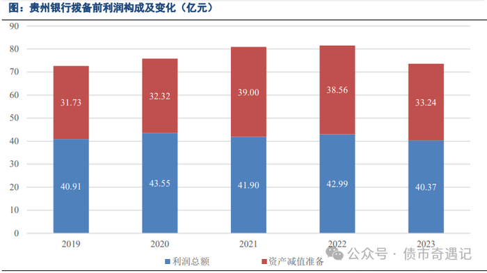 利润方面,从拨备前利润来看,2023年贵州银行的拨备前利润显著下降,同时,在2023年在计提减值准备下降的情况下,利润总额依旧是下滑的。