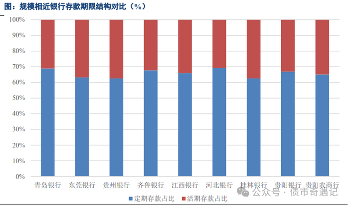 从存款期限结构对比来看,截至最新,贵州银行定期存款占比为61.18%,尽管持续提高,但与规模相近银行和同区域银行对比仍是最低水平。可见,贵州银行较同规模银行而言,不仅吸收存款的占比低,存款结构的稳定性也相对较低。