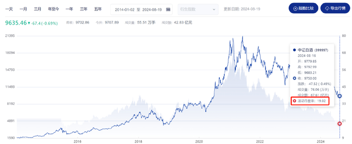 目前,中证白酒指数滚动市盈率为19.02,这个水平不仅低于2018年的熊市底部,也接近了2015年以来的最低点,简直杀疯了。