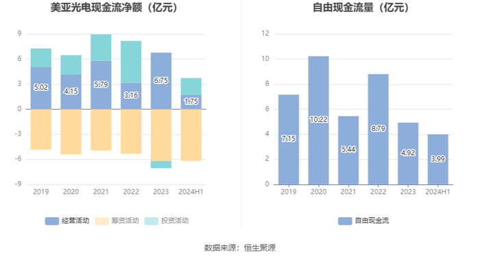 进一步统计发现,2024年上半年公司自由现金流为3.99亿元,相比上年同期增长23.83%。