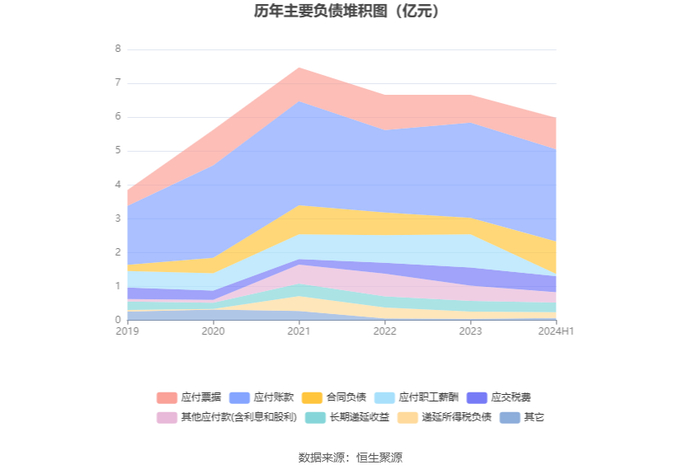负债重大变化方面,截至2024年上半年末,公司应付职工薪酬较上年末减少93.94%,占公司总资产比重下降2.67个百分点;合同负债较上年末增加93.87%,占公司总资产比重上升1.79个百分点,主要系公司预收货款增长;其他应付款(含利息和股利)较上年末减少32.57%,占公司总资产比重下降0.29个百分点;应付票据较上年末增加13.48%,占公司总资产比重上升0.74个百分点。