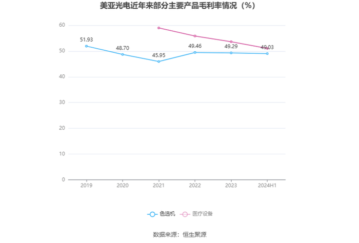 分产品看,色选机、医疗设备2024年上半年毛利率分别为49.03%、51.04%。