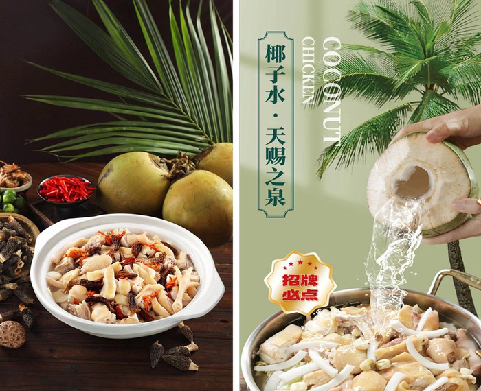 菜品上此次推出“菌菇+椰子鸡”为主打的特色菜品,辅以海南椰子白鳝鱼、金牌蒜香排骨、杂鱼煲、“会跳舞”的黑豆腐等招牌菜品,传承琼味美食的基础上不乏创新元素。