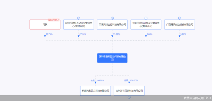 游戏科学成立于2014年,由腾讯原《斗战神》网游项目核心成员冯骥等人创立,冯骥目前任董事长。从目前股权关系来看,游戏科学共有5名股东,分别是冯骥、深圳市游科互动企业管理中心(有限合伙)(以下简称“游科互动”)、天津英雄金控科技有限公司(以下简称“英雄金控”)、深圳市游科研发企业管理中心(有限合伙)(以下简称“游科研发”)、广西腾讯创业投资有限公司,持股比例分别为38.76%、27.36%、19%、9.88%、5%。