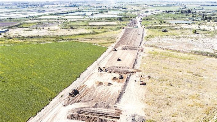 航拍的五家渠—乌鲁木齐机场公路项目施工现场(资料图片)。该项目是兵团“十四五”交通规划重点项目,公路全长20.64公里,计划总投资7.4亿元。项目建成后,将进一步完善沿线市政配套设施,有力促进兵地融合发展,带动沿线经济社会高质量发展。 兵团日报常驻记者 李华北 摄