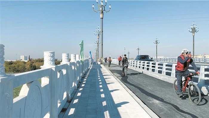 通车后的石玛大桥(资料图片)。这座大桥将石河子市和玛纳斯县紧密连接起来,为推动兵地融合发展、促进各族群众交往交流交融提供了有力保障。兵团日报全媒体记者 赵珺 摄