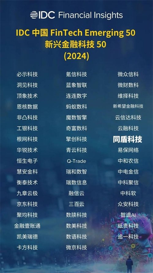 同盾科技:连续五年荣登“2024 IDC 中国 FinTech Emerging 50”榜单